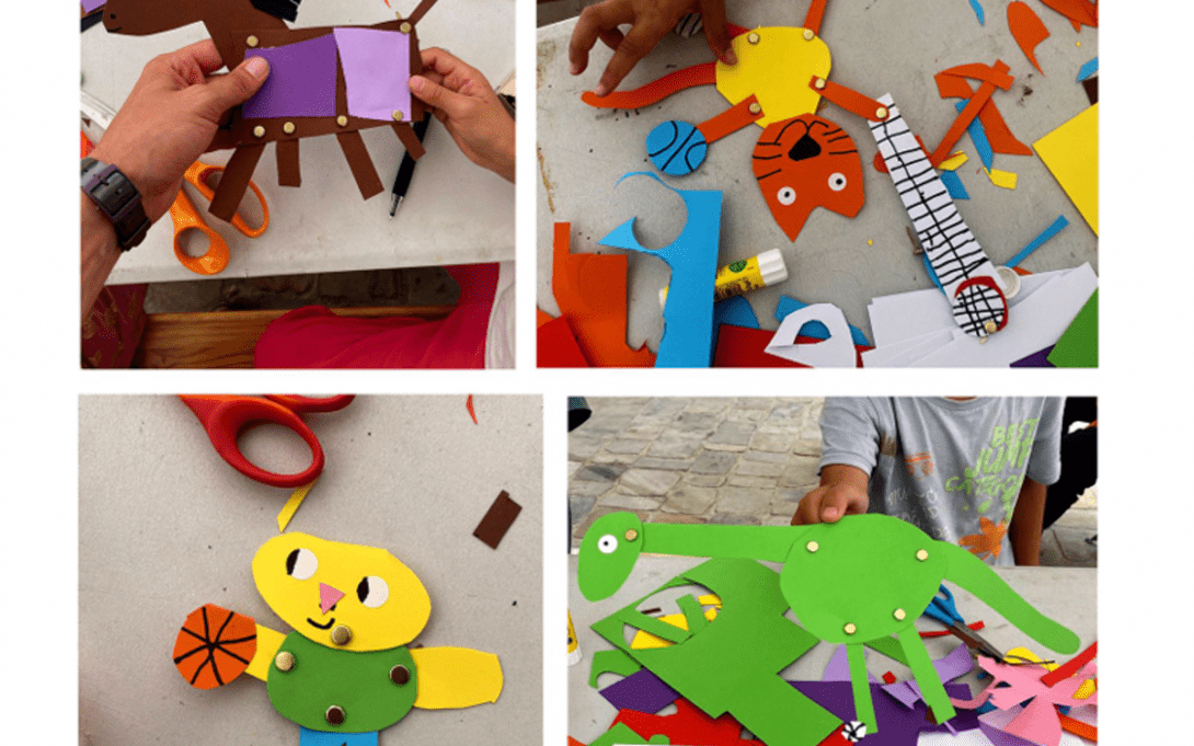 Les enfants mettent à profit leur imagination pour réaliser des pantins articulés d'animaux, réels ou imaginaires, et réfléchir sur le corps et le mouvement.